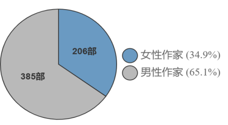 注:数据来源中国科幻数据库(CSFDB),统计样本量N=591,女性作家作品占比34.86%。