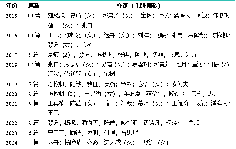 表1 在《克拉克世界》发表过作品的中国科幻作家总表(2015—2024)