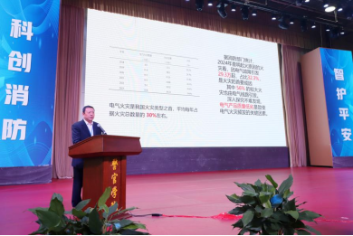 随后,应急管理部灭火救援专家组成员、原北京市公安消防总队总队长吴志强少将作题为《数字中国建设背景下的消防产业的高质量发展》的主旨报告。围绕“电气产品质量与火灾防控”这一关键议题,从电气火灾现状与形势切入,深入分析了电气产品质量对消防安全的重要影响,并系统提出了应对策略与发展建议。指出智慧消防技术在提升电气火灾防控能力中的重要作用,为推动消防产业高质量发展提供了深刻且具有操作性的见解。