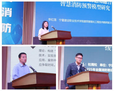 在优秀论文作者交流发言环节,宁夏建设职业技术学院建筑智能化工程技术教研室主任、副教授李红莲,分享其获奖论文《基于物联网与多源感知融合的智慧消防预警模型研究》。宁夏警官职业学院中职部教员朱德森,就《基于微博大数据的火灾事件风险动态监测与精准预测研究》进行交流发言。宁夏警官职业学院中职部教员杜雨松,分享其研究成果《基于Weiszfeld算法的城市搜索与救援保障中心选址研究》。