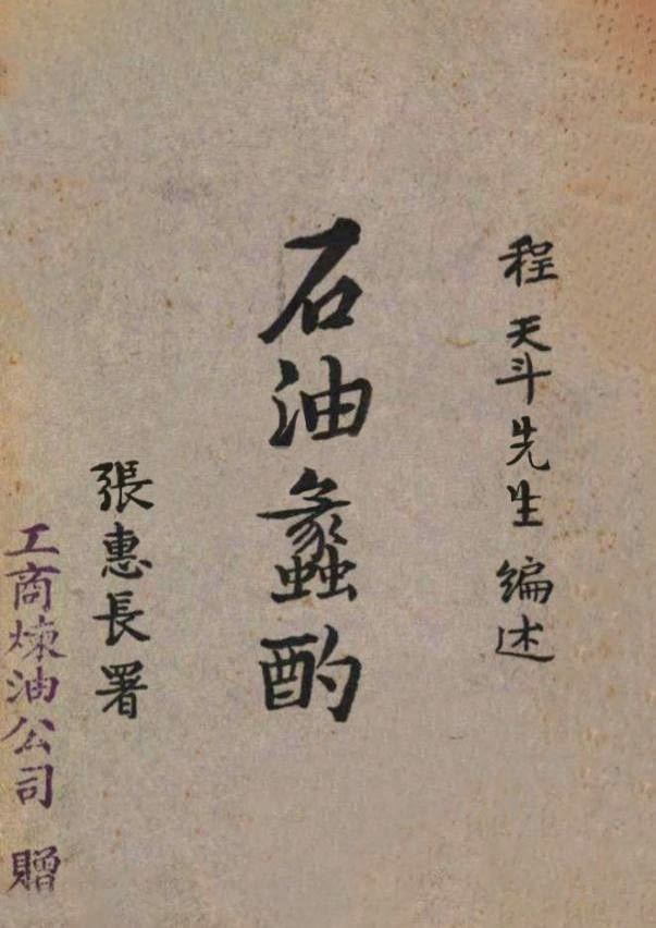 从1929年开始,石油科普作品逐渐丰富起来,受众也开始由青年学子向政府官员和少年儿童拓展。1930年,广东名人程天斗写了《石油蠡酌》(图7)一书,介绍了世界石油业概况、中国石油政策、工商炼油公司纪略等内容,据说并未公开发行。1947年,国民政府行政院新闻局编著的内部资料《石油》,介绍了抗日战争前我国的石油产品市场、油田勘探,及抗日战争胜利后石油业的发展、中国石油公司产销情形、外油在中国市场的重要性等内容,供政府工作人员和决策者参考。面向少儿石油科普的作品如陈岳生编著、商务印书馆出版的小学生分年补充读本《石油》(1936),世界科学社研究部编著的世界科学社丛书《石油》分册(1947),王冰编著、文通书局出版的《中国的盐和石油》(1948)等。