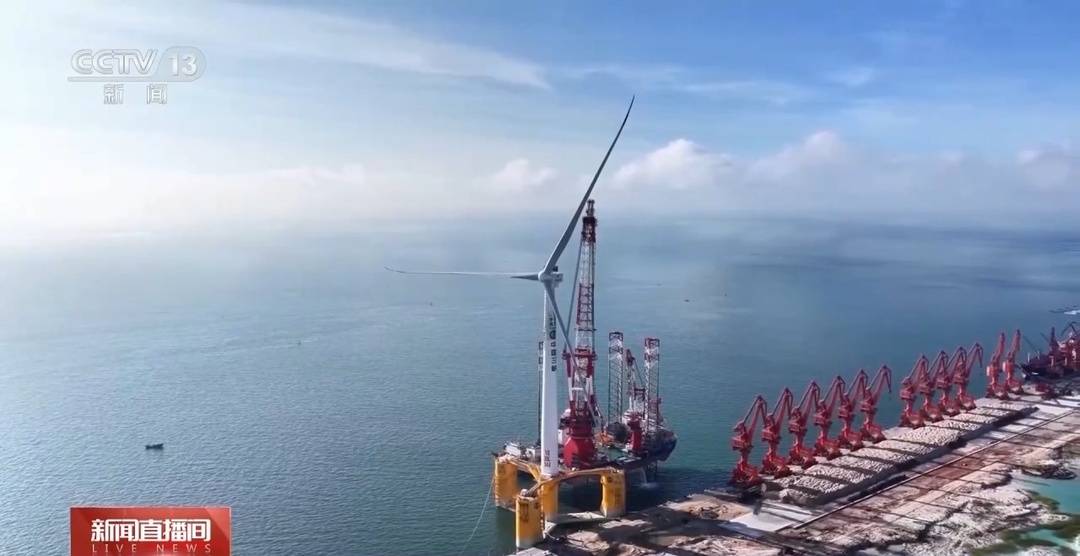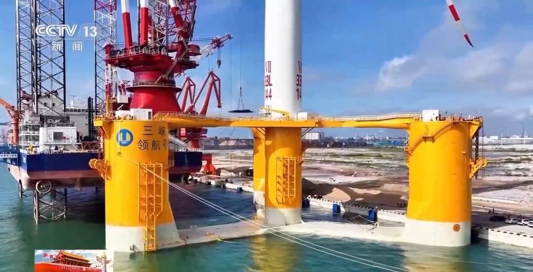 三峡集团阳江公司风机吊装负责人 朱彬:此次吊装是国内首次采用最新一代风机安装船,在码头站桩完成施工,风机塔筒、主机叶片等设备预先运上风机安装船,实现装运一体化,为我国海上风电走向深远海提供了重要技术实践支撑。