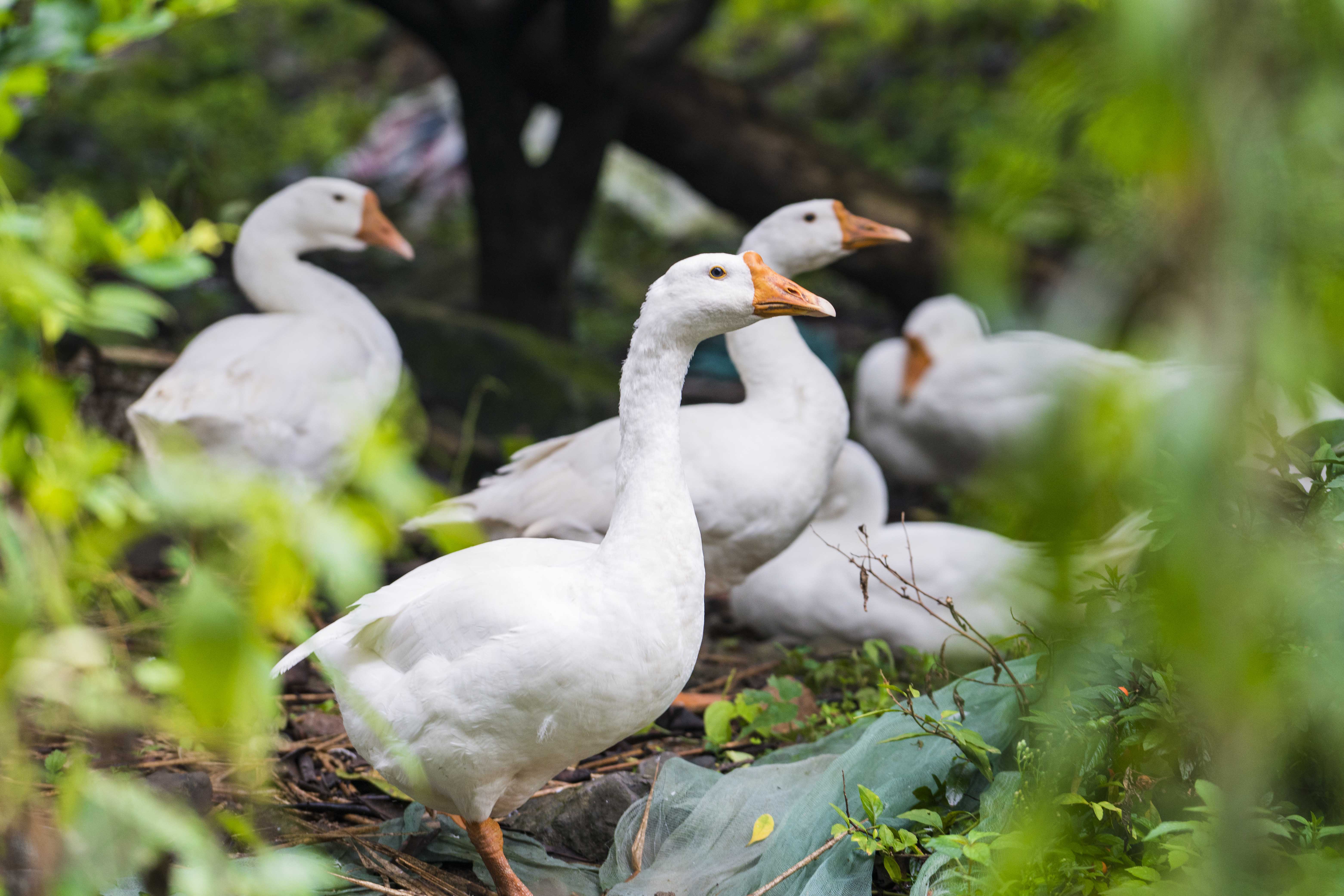 鹅群在树荫下歇息(图片来源:包图网)