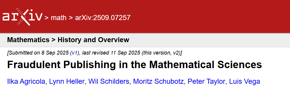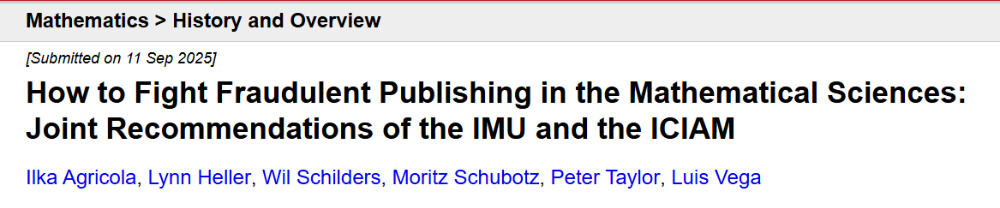Agricola:公平地说,数学领域的问题可能不像癌症研究等其他领域那么严重,但数学界规模本身更小,且虚假论文数量正以惊人的速度增长。掠夺性和低质量的巨型期刊正使出浑身解数,引诱知名科学家步入它们的虚假科学“平行宇宙”,试图借此营造自身“可信”的假象。因此,我们的目标之一就是让数学界充分意识到这个问题的严重性!