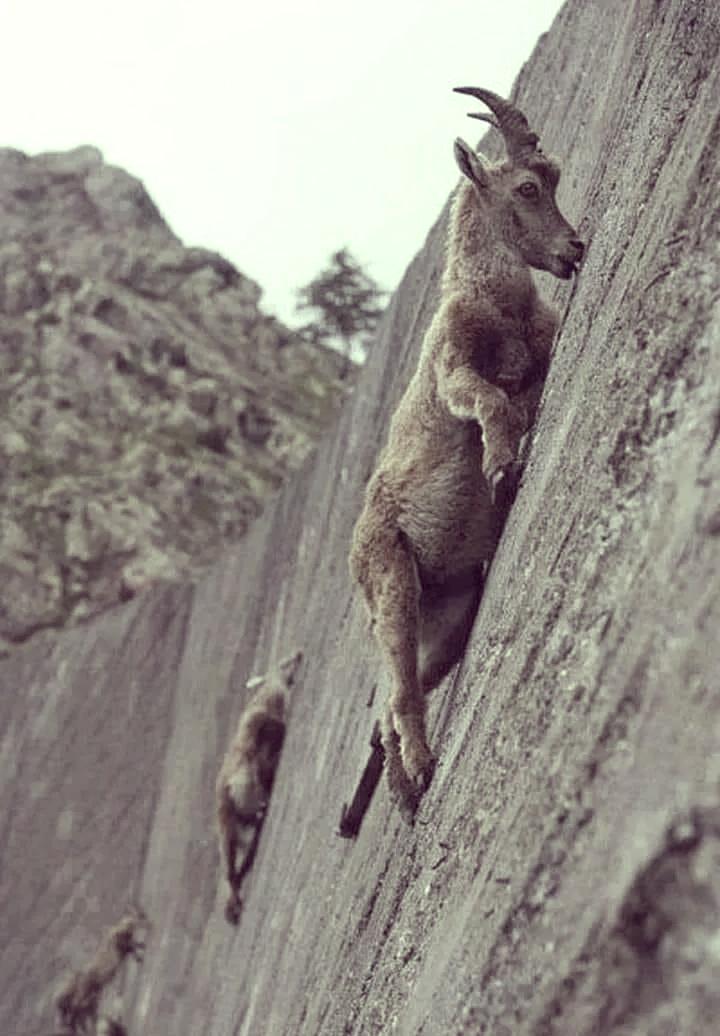在意大利辛基诺水坝护墙上,一群阿尔卑斯山羊正在上演违背物理常识的表演——它们在近乎垂直的混凝土坝体上如履平地,惬意地舔食着渗水处富含的盐分与矿物。这些重达80公斤的动物,仅凭那看似笨拙粗硬的蹄子,创造了在98度倾斜面上稳健站立的生物学奇观。
