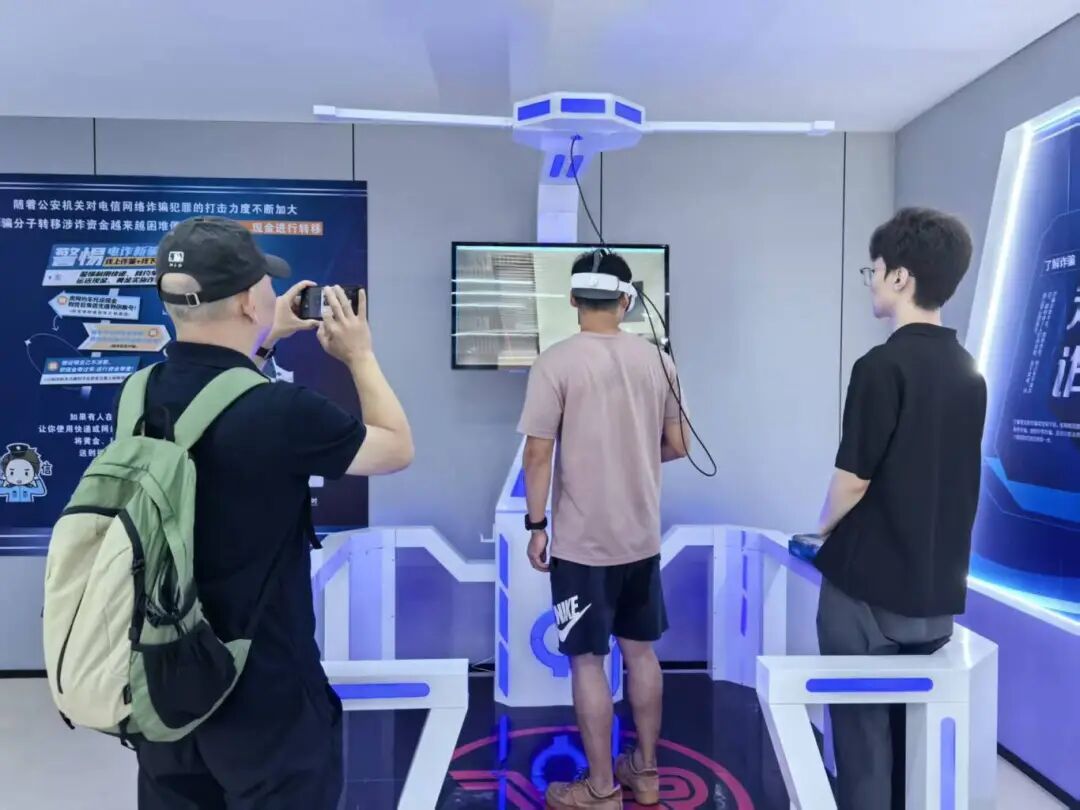 而场馆最受欢迎的当属VR反诈一体机。参观者戴上设备,瞬间"穿越"到诈骗现场:可能是接到"客服"来电说"订单异常要退款",也可能是在"交友软件"上被诱导投资——面对这些逼真的骗局,不少人不知不觉就走到了"转账"的环节,直到屏幕突然弹出"你被骗了"的提示,才惊出一身冷汗。"以前总觉得诈骗离自己很远,现在才知道骗子的手段这么多,在这里被骗一次,出去以后就能多份警惕了。"一位市民体验后说道。