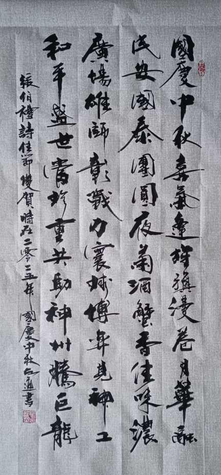 编者按:国庆、中秋佳节之际,张伯礼院士诗作"佳节双贺″,由中国现代实景山水画派及左道书法字体创始人左道先生呈现。