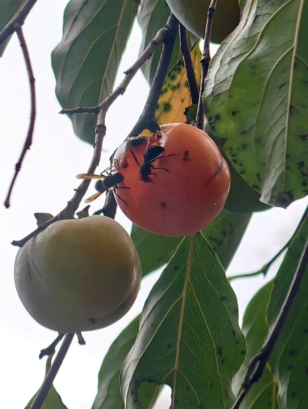 果实由青涩转为暖黄,而最早熟透的那几颗,早已被机灵的鸟儿与胡蜂尝了鲜,留下被啄食的痕迹,成为秋日共享的甜蜜证明。