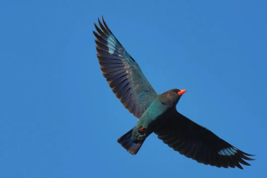 9月14日,大红山的林梢掠过5道翠绿的身影——三宝鸟集群飞行,羽色斑斓,在阳光下闪动着蓝绿光泽。这是迁徙的信号。
