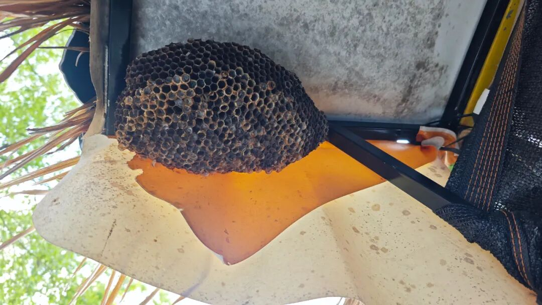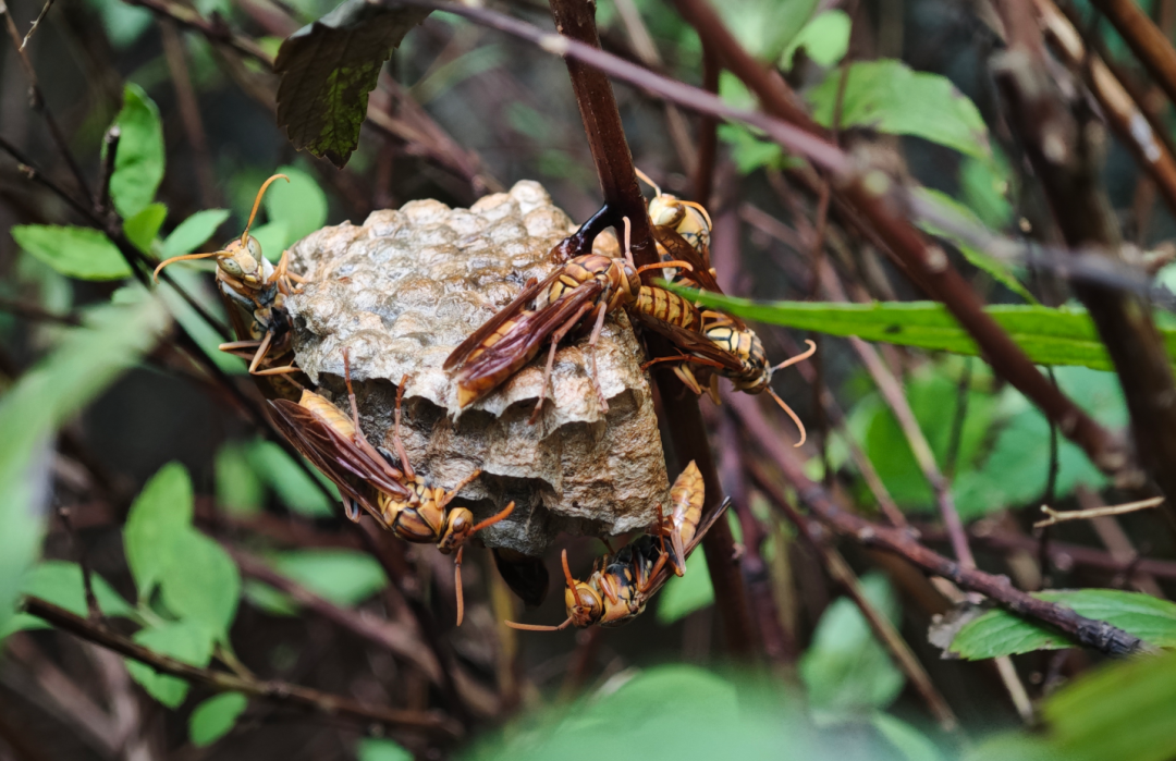 屋檐下的马蜂窝已经“蜂去巢空”,日本马蜂还在活动,但留给它们的时间不多了。