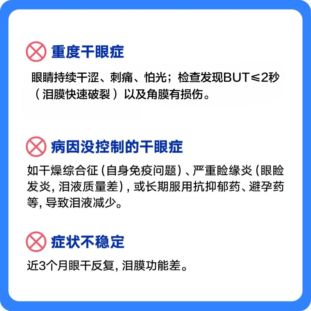 另一方面,角膜激光类近视手术会切断部分角膜表面神经,而这些神经负责“感知干燥+刺激泪液分泌”,如果术前就有干眼,可能会加重眼干,且更难恢复,甚至影响角膜愈合。
