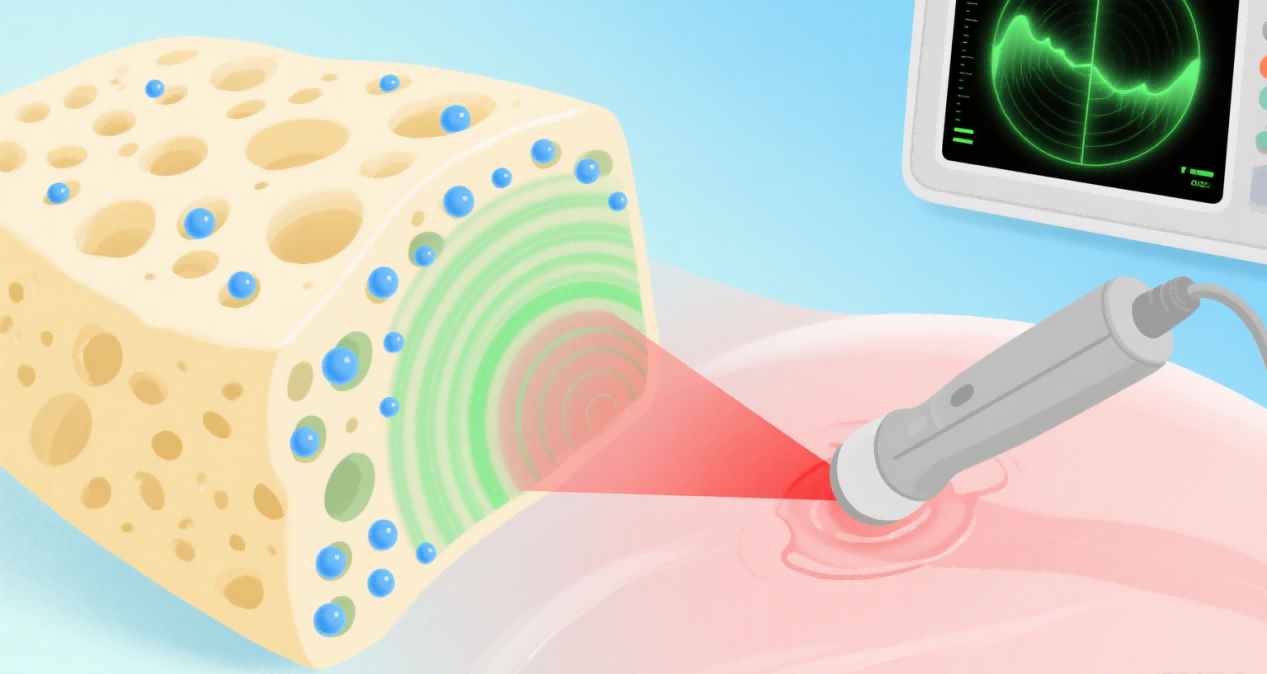 为此,在止血海绵中引入超声可显影成分与力学响应结构能在体内形成稳定的超声回声信号或在需要时被超声激活产生对比气泡,从而让体外超声探头“看见”伤腔动态: