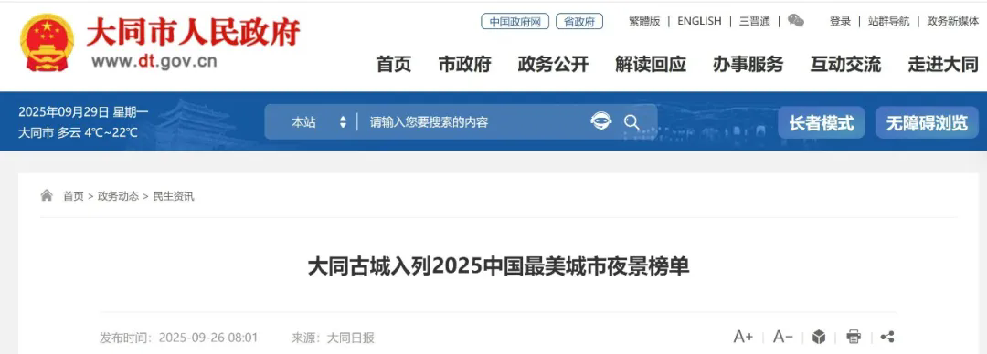近日,由抖音、快手、小红书等平台大数据汇总综合现场观感度、整体亲和度、网络热度、口碑好评分四个维度,评选而出的2025年中国最美城市夜景榜单出炉。大同古城凭借独特魅力强势跻身前20名成为山西省唯一获此殊荣的城市!