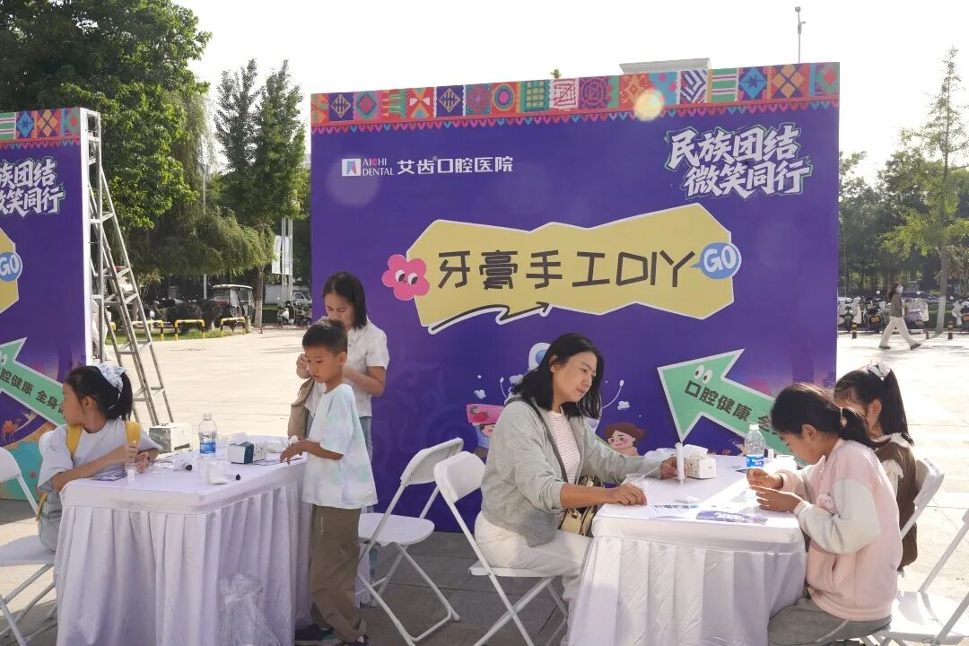 艾齿口腔医院口腔健康科普馆打造的“民族团结·微笑同行”艾齿超人口腔科普游园会成为活动现场的亮点展区,吸引了超过500人次的市民参与体验。