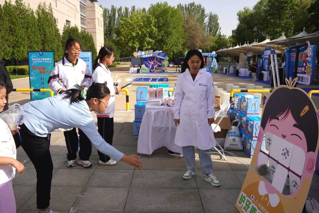 宁夏“全国科普月”主场活动现场,孩子们排队参加一个个口腔科普游戏,家长们在一旁笑着拿出手机记录——这是艾齿口腔医院“民族团结·微笑同行”科普游园会的火热场景。
