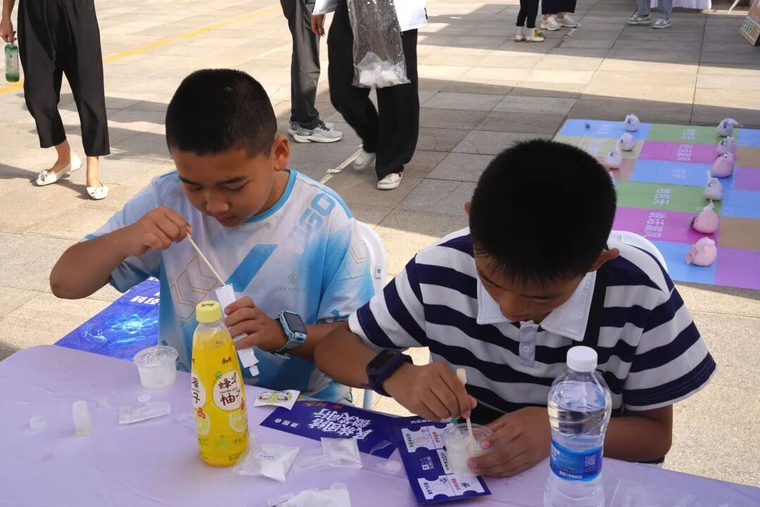 “牙膏手工DIY”区域,家长和孩子们一起动手制作牙膏,了解牙膏的成分和制作原理。工作人员向大家介绍牙膏的各种成分及其作用,参与者可以根据自己的喜好选择香料和成分,制作出独一无二的个性化牙膏。