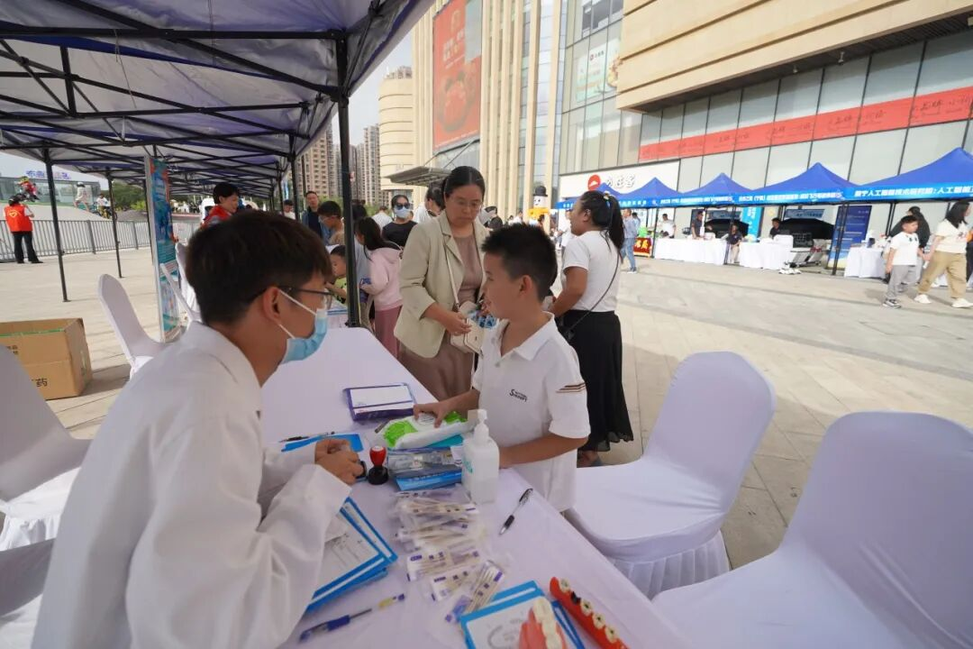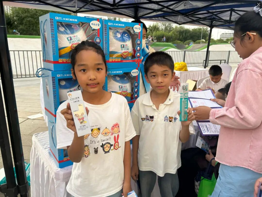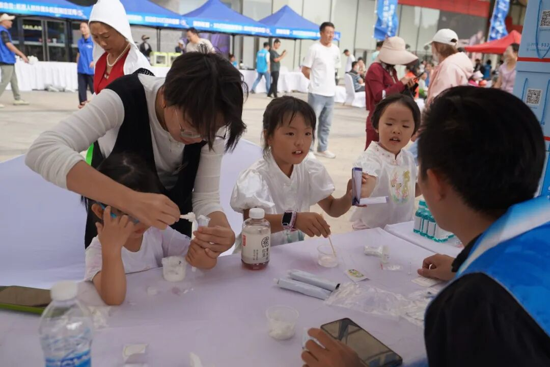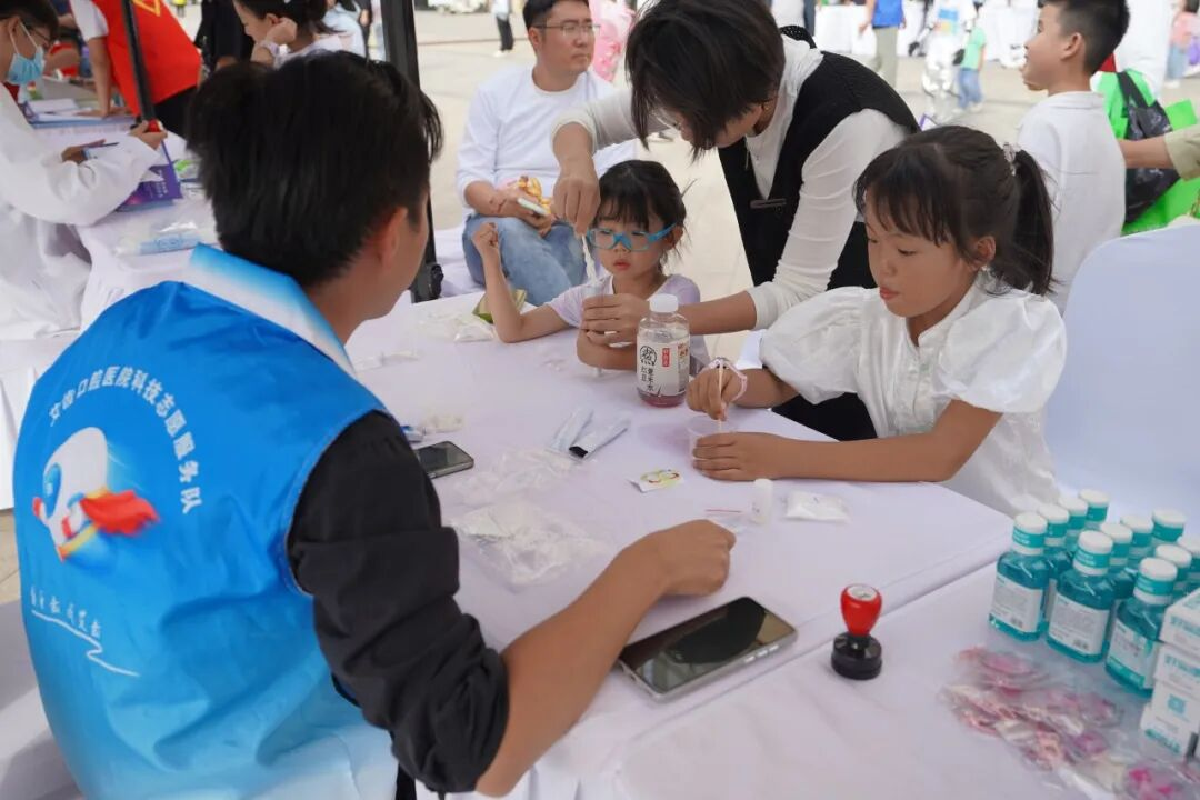 除主舞台展演外,活动现场还设置了多个科普宣传与互动体验区。艾齿口腔医院口腔健康科普馆作为首次参展单位,带来了多项特色互动项目,成为现场一大亮点。在“牙膏DIY”区域,不少家长与孩子一起动手制作专属牙膏,了解不同成分对口腔健康的作用;“口腔科普检查”区由专业医生提供免费口腔初步检查与咨询,帮助大家树立早预防、早发现的口腔保健意识;“护牙小能手”互动游戏则通过趣味问答和实操演示,让孩子们在游戏中掌握正确刷牙方法。许多小朋友兴奋排队参与,在体验中激发对科学和健康的兴趣。