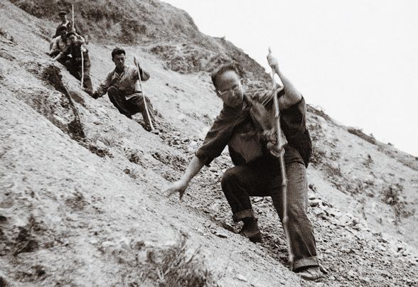 1974年5月11日,胡聿贤(前)到云南永善大关实地考察