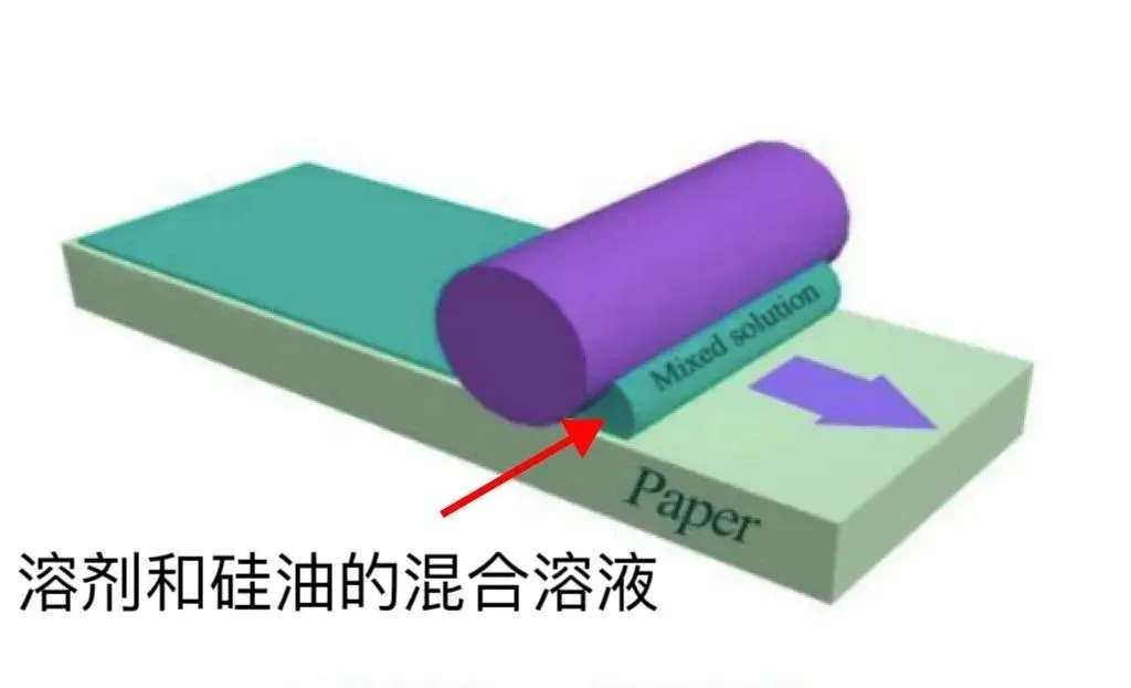 最容易出问题的就是夹在中间层的溶剂,本来溶剂就和胶水差不多,起到把底纸和硅油粘在一起的作用,粘好后通过两次烘干程序处理完全挥发掉。