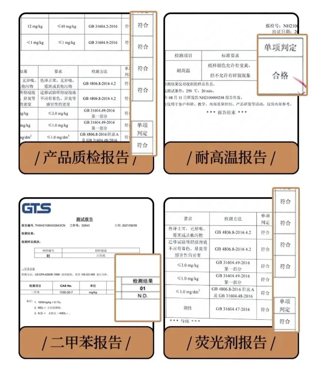 直接套个塑料袋,里面放了一张不明所以的合格证。品牌、厂家、生产厂址、卫生许可证等等信息全都没有,标准的“三无”产品。这种硅油纸不仅卫生方面可能不过关,在烤箱、空气炸锅等高温环境使用下,更可能析出氢化三联苯、甲苯、二甲苯等有害物质。