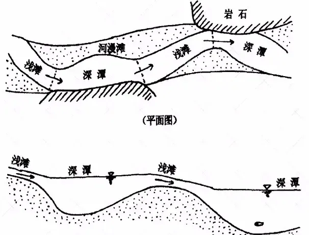 深潭和有水草的浅滩更容易有鱼。来源:河道治理500例