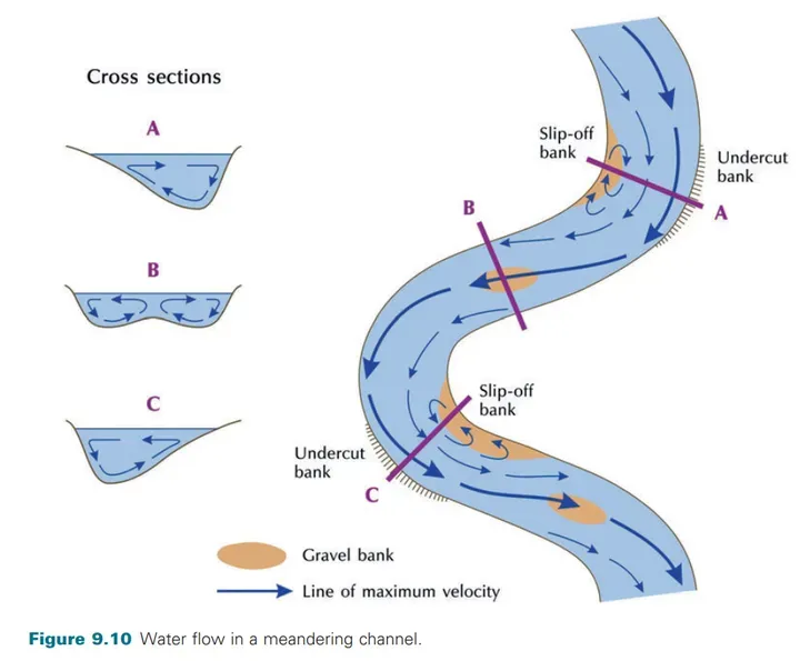 一条蜿蜒而行的江河,因为江滩、河滩的随机分布,也使得水流流速有着很大的变化。