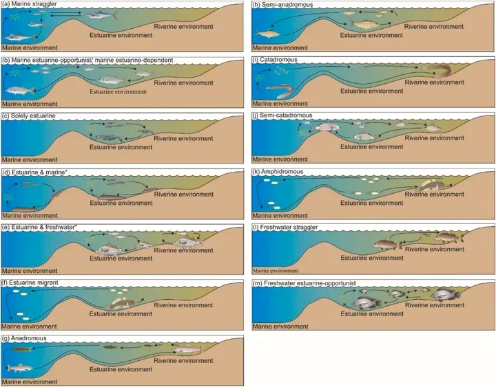 [2]Whitfield,AlanK.,etal."Importanceofmarine-estuarine-riverineconnectivitytolarvaeandearlyjuvenilesofestuary-associatedfishtaxa."Environmentalbiologyoffishes106.10(2023):1983-2009.