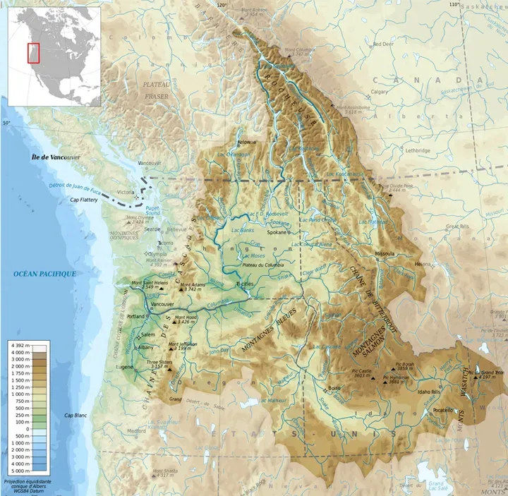 位于北美洲的哥伦比亚河流域。来源:wikimedia