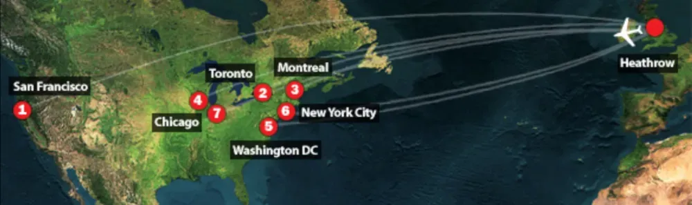 恐怖分子计划实施袭击的几条航线,图片来源:Wikipedia