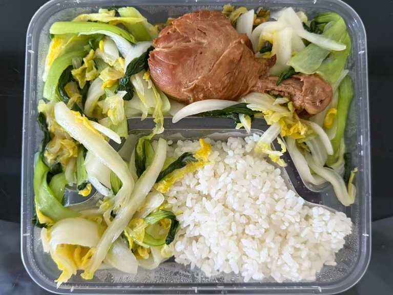 •主食堆成山,搭配太敷衍:一大盒白米饭占了半个餐盒,菜只有零星几片肉、几口青菜,吃着单调,营养也失衡。