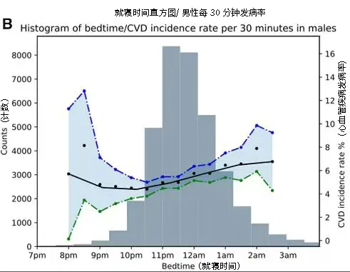 23~23点59分入睡,心血管疾病的发生风险增加12%。