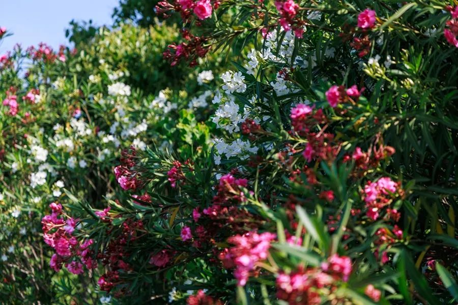 夹竹桃是一种广泛种植的观赏花,常见有白色、粉红色等。夹竹桃的所有部分包括茎、叶、花粉、种子、枝都有毒,它的主要毒性成分为强心苷类化合物。若不慎误食或伤口碰到夹竹桃分泌的乳白色汁液,可能会造成中毒。轻微中毒症状表现为食欲不振、恶心、腹泻等,严重中毒可能会危害心脏甚至诱发死亡。