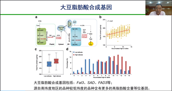 国家大豆产业技术体系首席科学家、中国农业科学院作物科学研究所大豆育种技术创新与新品种选育创新团队首席专家韩天富研究员以“大豆品种的前世今生”首先开讲,从野生大豆到栽培大豆的性状演化为大家回顾了华夏先民驯化大豆的历史进程,解析重点驯化性状和关键基因,梳理中国大豆品种性状演变规律,剖析不同年代主栽品种系谱构成和遗传特点,遴选不同主产区代表性平台品种,提出基于优异主栽品种的育种策略——布达拉模型,勾画实现大豆育种新突破的技术蓝图。中国农业科学院作物科学研究所作物耕作与栽培中心副主任、作物耕作与生态创新团队首席科学家张卫建研究员以“气候变化下的粮食可持续丰产之路——主动适应与积极减缓”为题,介绍了从区域水热的非对称变化、作物生长的非线性响应、丰产增效耕作适应技术、作物系统的碳排放响应和固碳减排耕作减缓技术等方面系统讲述了气候变暖与食物短缺对人类生存与发展所产生的双重危机,主动适应与积极减缓并举,创建可持续粮食丰产系统,是应对危机的根本之路,是同时实现国家粮食安全与“碳中和”两大战略目标的明智之举。中国农业科学院作物科学研究所A类青年英才金秀良研究员以“作物表型性状鉴定技术促进智慧农业发展”为题,系统地整理和总结了当前作物表型性状鉴定所用传感器类型以及对应的作物表型性状鉴定难点问题和解决办法。讨论了不同传感器的优点、缺点及其应用潜力,并指出地面和航空作物表型鉴定平台是将来的重要发展方向;详实介绍了当前图像算法的表型研究、光谱技术的表型研究和模型与表型结合的研究及其应用案例。