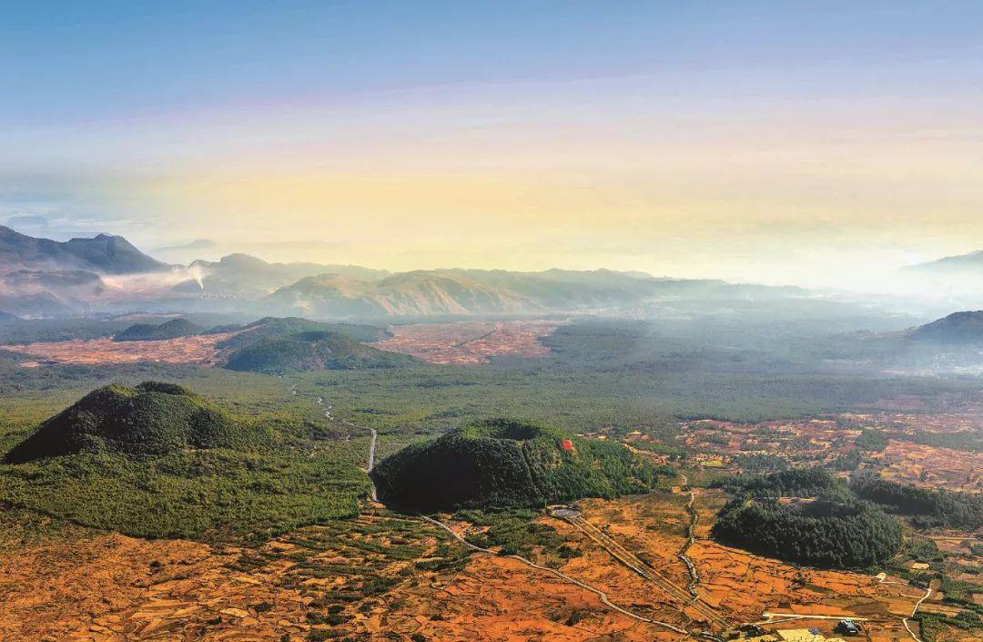 云南腾冲火山群,包括90多座火山(图1)。它的地质背景是:新生代(过去6500万年的地质时期)以来,印度板块和亚欧板块碰撞挤压,两大板块的边界就在腾冲附近,因而岩浆活动活跃,造就了腾冲火山群。