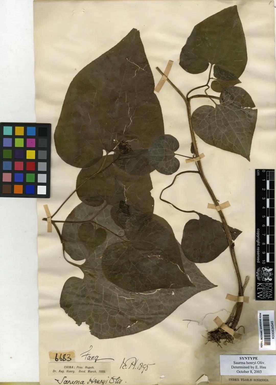 马蹄香的全模式标本之一,保存于邱园标本馆 | 天一