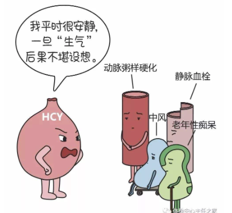 同型半胱氨酸是人体内的一种含硫氨基酸,是体内蛋氨酸和半胱氨酸的中间代谢产物,是机体维持正常运转所必须的一种物质。正常情况下,它可被分解代谢,体内浓度较低,但某些原发或继发等因素可能导致代谢异常,血中的同型半胱氨酸堆积,浓度升高。流行病学调查发现,有5%-7%人群会血浆同型半胱氨酸升高。目前,广泛认为同型半胱氨酸≥15μmol/L 可以诊断为高同型半胱氨酸血症,按照水平高低可分为:轻度(15-30μmol/LL)、中度(30-100μmol/L)、重度(>100μmol/L) [2]。