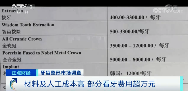 2 材料及人工成本高 部分看牙费用超万元
