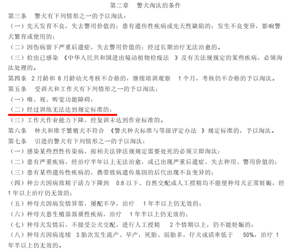 图片来源:《警犬淘汰实施办法》