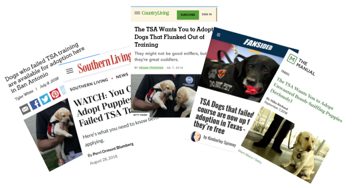 美国联邦运输安全管理局(Transportation Security Administration,TSA)就有专门领养项目,包括淘汰犬和退役犬。