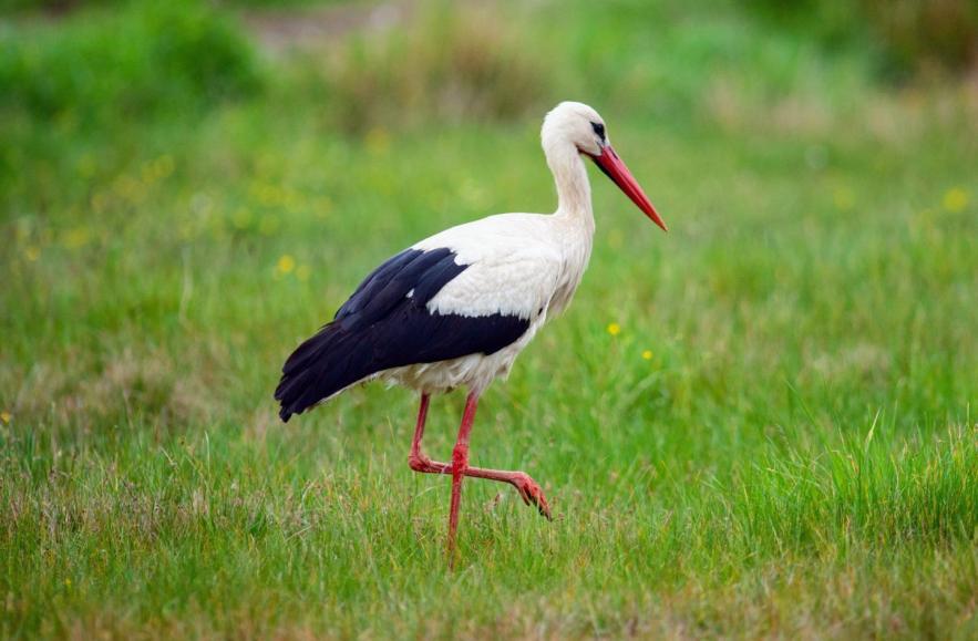 在嫩草地上找吃的白鹳 (图片来源:earth)