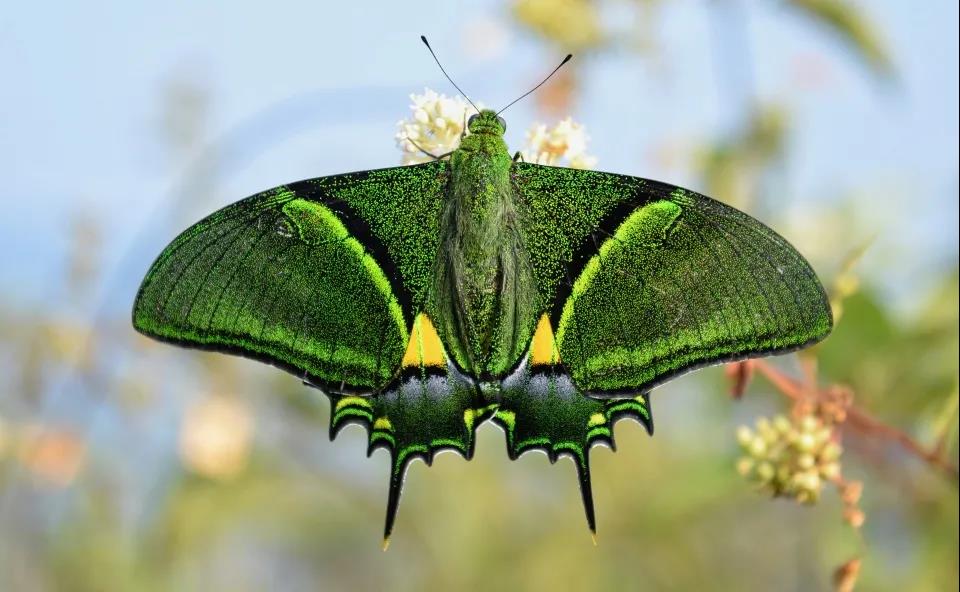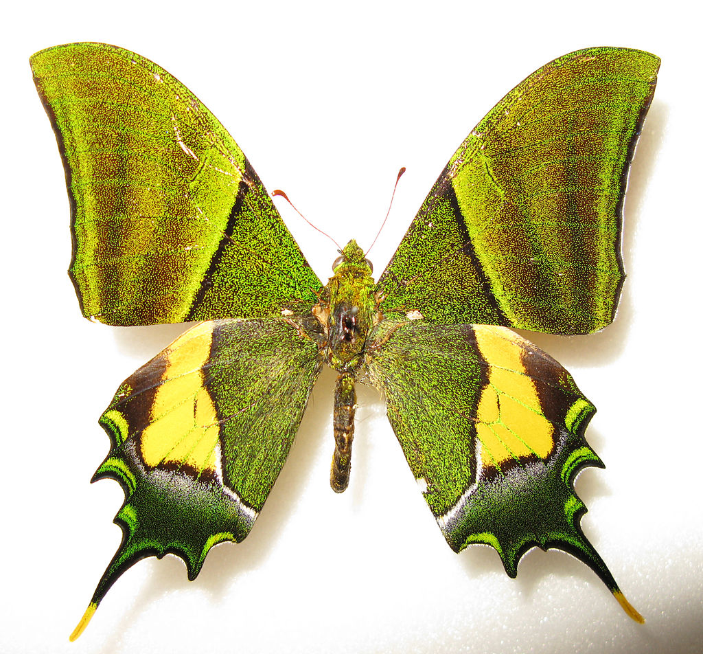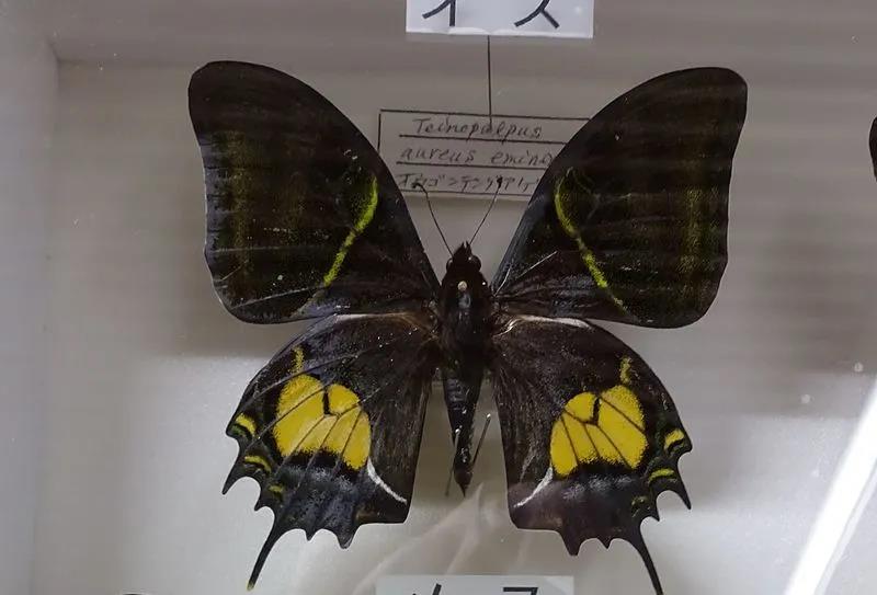 没有人知道,在100年前,曾任职广州德华中学(German-Chinese Middle School)校长的德国昆虫学家,熟识中国鳞翅目昆虫的 Rudolf Emil Mell(1878-1970),在见到这只壮硕的绿色凤蝶时是如何的惊喜。他用金色一词为这个难得的喙凤蝶属的第二个物种命名,以示其雄蝶后翅上标志性的大块金斑。此后至今,这种广布中国南部的神秘凤蝶,成为亚洲最闻名于世的几种昆虫之一,也被普遍认为是中国的无冕国蝶。