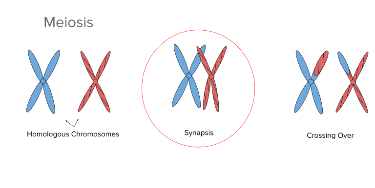 减数分裂时,同源染色体之间会发生重组。(图片来源:维基百科)