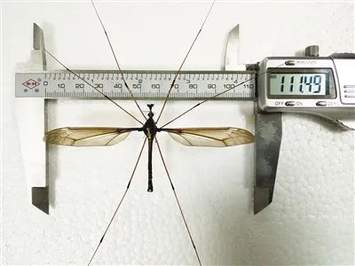 2017年8月,成都华希昆虫博物馆的馆长赵力在成都青城山采集到了一只毛黑棘膝大蚊Holorusia mikado,其个体翅展竟达到11.15 cm,堪称大蚊中的“巨无霸”。