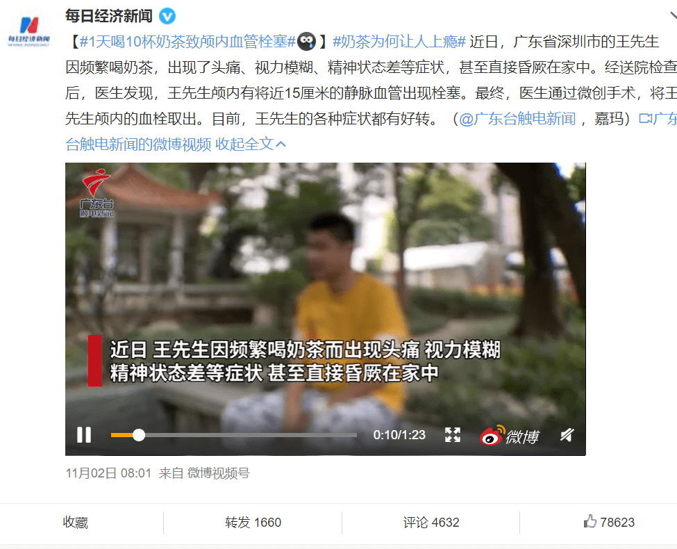 有多少人的快乐源泉是奶茶赋予的?#奶茶为何让人上瘾# ?近日一男子因频繁喝奶茶,其颅内有近15厘米的静脉血管出现栓塞,#奶茶喝多易引发哪类疾病#?