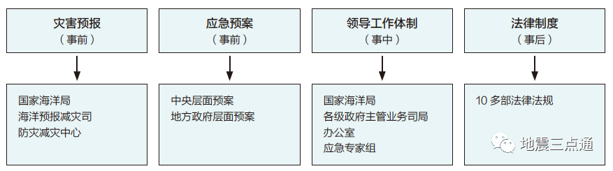 陈瑜,博士,大连海洋大学海洋法律与人文学院讲师、硕士生导师,研究方向为社会风险治理。自2019 年工作以来,主持省级科研课题3 项,其中包括重点课题2 项;主持市级科研课题2 项,其中包括重点课题1 项;发表CSSCI 论文多篇。2019 年获得城市发展紧缺人才称号。 引言 21 世纪开始,受到全球气候变化、环境污染和人类开发活动等多重因素的影响,海洋灾害已经成为全社会共同关注的问题。海洋灾害,一般来说是由于海洋变异而导致对海洋本身或海岸造成的灾害。根据“我国近海海洋综合调查与评价” 专项《海洋灾害调查技术规程》,海洋灾害主要分为海洋环境灾害、海洋地质灾害和海洋生态灾害等类型。 海洋环境灾害和海洋地质灾害多表现为自然环境对于海洋环境的灾害影响,其中,海洋环境灾害包括风暴潮、海浪和海冰等, 海洋地质灾害包括海洋地震及次生灾害、海岸侵蚀、海水入侵、土壤盐渍化和海平面变化等现象。 而海洋生态灾害除了包括赤潮、海浪、海冰等自然因素灾害之外,还特别包括由于海域污染、工程失误、船舶溢油等人为因素造成的海洋生态环境恶化。近年来由于海洋生态灾害导致的事件越来越多,从2010 年墨西哥湾漏油事故,2010 年“7·16”大连输油管道爆炸事故到2011 年渤海蓬莱油田溢油事故,再到2018 年福建石狮市有毒赤潮事件,这类灾害直接导致局部海域严重污染、大批渔民和养殖户损失惨重,部分海域甚至成为“没有鱼生存的死海”。 这些海洋灾害的爆发引发了人们对海洋灾害应对的思考(图1—图3),也带来了海洋灾害管理的现实问题:我们应该如何应对未知的、可能带来重大风险的海洋灾害? 图1 2019年我国海洋灾害直接经济损失 (数据来源:《中国海洋灾害公报》) (数据来源:《中国海洋灾害公报》) 图3 2010年7月16日大连输油管道爆炸事故 为了解决海洋灾害管理的现实问题,自2003 年“非典”疫情之后,我国政府设立了“一案三制”应急管理体系,也展开了相应的海洋灾害应急管理工作。我国政府建成了以政府系统为主导的应急主体体制,开展了灾害事前、事中、事后环节相应的应急运行机制,也出台了10 多部海洋灾害法律法规。 但是从2020 年初我国地方政府在新冠肺炎疫情暴发初期的应急处置就可以看出,当重大灾害来临时,能否高效地应对及处理危机,对我们而言仍旧是个巨大的挑战。 因此,在我国海洋灾害应急管理过程中,如何构建有效的海洋灾害应急管理体系,如何通过整合资源有效提升海洋应急管理能力,减轻突发事件带来的损失,增强海洋可持续性发展,成为当前我国海洋应急管理乃至海洋治理中亟待解决的一个重要问题。 一、我国海洋灾害应急管理体系的现状与问题 根据王光星等(2010)关于我国应急管理研究的“多中心治理需求观”视角, 我国海洋灾害应急管理体系建设主要包括管理主体体系建设、应急管理过程建设、应急管理机制建设三个方面。 (一)应急管理主体力量单一 我国海洋灾害应急管理主体力量较为单一。应急管理部成立之后,我国海洋应急管理主体是以政府为主导的部委或部门间协同网络,应急管理部和国家海洋局具有指挥和管理海洋灾害的直接权力和责任,各地各层级相应政府组织协同和配合应急管理部和国家海洋局的工作(图4)。 图4 我国海洋灾害应急管理中央层级主体脉络 这是一种复合了科层结构的网络结构,而非纯粹的科层结构或网络结构,是以单一的政府力量应对未来严峻的海洋灾害。面对错综复杂的未来海洋灾害问题,仅包括政府的主体网络在资源配置、物资储备与调配等方面还是缺乏很强预见性的系统应对措施,很难满足灾害暴发时的激增性需求。 同时,我国海洋灾害主体建设对社会主体参与问题探讨不足,对于如何借助社会资源或社会资本力量共同防范海洋灾害风险的研究不充分, 特别是如何将社区主体参与新冠肺炎疫情防控工作的宝贵经验融入海洋灾害应急主体建设之中,是缺乏相关讨论的。 (二)事前应急管理过程薄弱 我国海洋灾害应急管理过程可以分为事前、事中、事后环节,主要包括灾害预报、应急预案、领导工作体制、法律制度等几个部分(图5),但是事前应急管理过程力量相对薄弱。 图5 我国海洋灾害事前应急管理过程体系 灾害预报方面,我国初步形成了由国家海洋局、海洋预报减灾司、防灾减灾中心构成的海洋预报减灾工作机构体系, 并完善了国家海洋环境预报中心的业务运行机制。例如,辽宁、山东两省海洋部门在原环保处的基础上加设预报减灾机构。 应急预案方面,我国海洋灾害应急管理制定了主要海洋灾害的应急预案,包括中央政府和地方政府两个层面,中央层面如2005 年1 月国务院颁布和实施的《国家突发公共事件总体应急预案》,国家海洋局颁布和实施的《全国海洋石油勘探开发重大海上溢油应急计划》、《赤潮灾害应急预案》以及《风暴潮、海啸、海冰灾害应急预案》等,地方层面如《辽宁省船舶污染海域应急预案》、《辽宁省突发海洋自然灾害应急预案》和作为《辽宁省人民政府突发公共事件总体应急预案》专项预案的《大连市突发海洋自然灾害应急预案》等。 领导工作体制方面,我国海洋灾害应急预案中详细地规定了应急管理的领导体制。具体来说国家海洋局设立相关灾害类型的应急工作领导小组,由各级政府主管业务的局领导担
