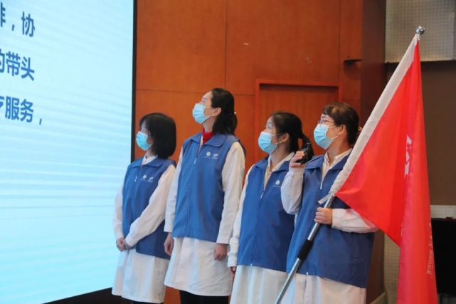 武昌区科学技术协会科普部谭宏部长为博士志愿队代表授旗
