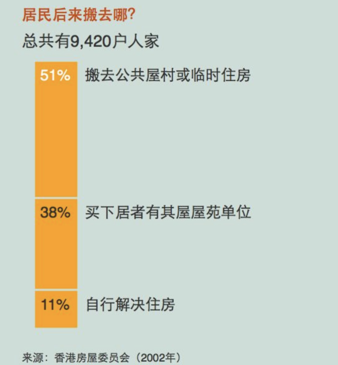 剩下的人要么买了香港「居者有其屋」屋苑(占38%),要么自行解决(占11%)。