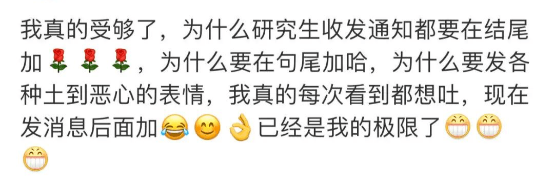 甲方让你快点干活,嘱咐你“辛苦了”;你又赔着笑让乙方加个班,现实中,面容僵硬的你此时三头六臂,聊天框里敲击出了各种开怀大笑的emoji以及热情洋溢的“哈”“好呢”等等优美汉语。