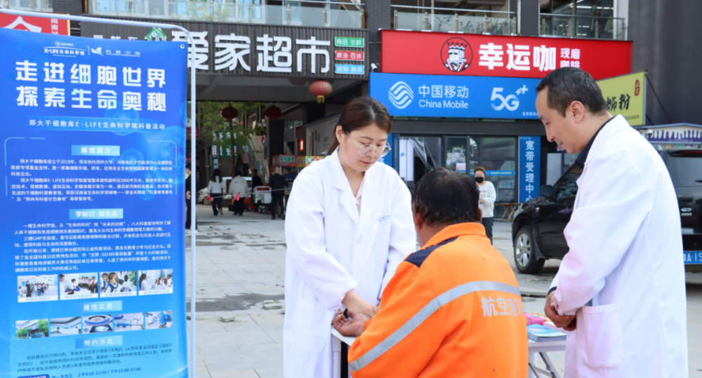 健康服务零距离,郑大干细胞库E·LiFE生命科学馆科普团队走进航空港区龙安商业街