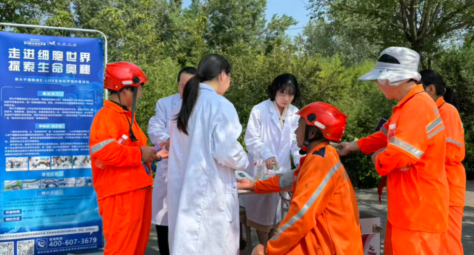 郑大干细胞库E·LiFE生命科学馆科普团队双节前夕走进航空港区龙王办事处,开展环卫工人健康科普行动